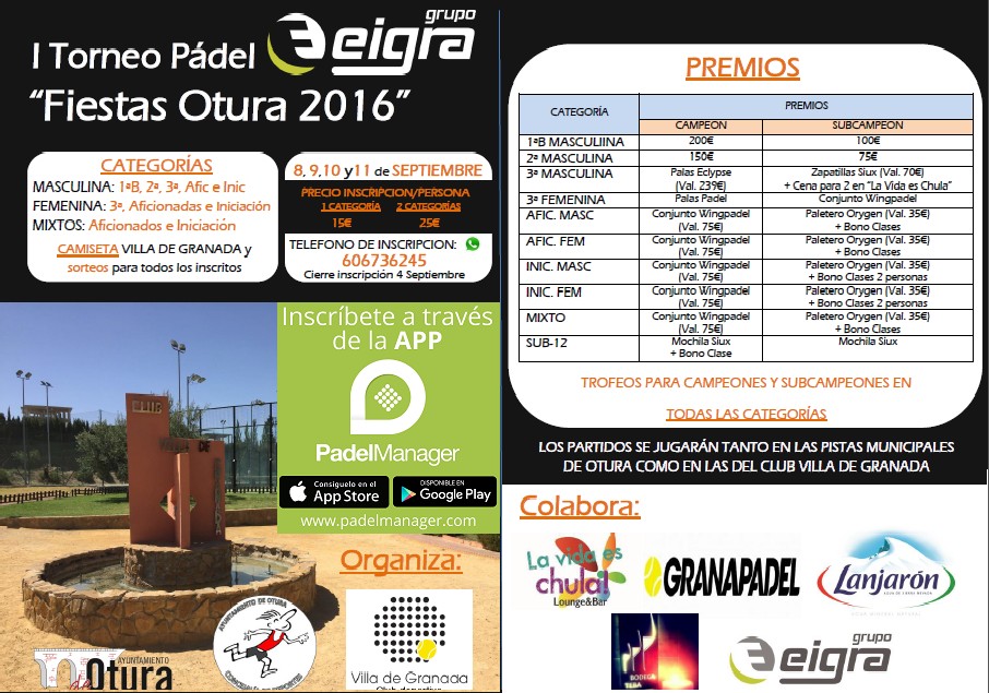 I TORNEO PADEL "FIESTAS DE OTURA 2016" GRUPO EIGRA