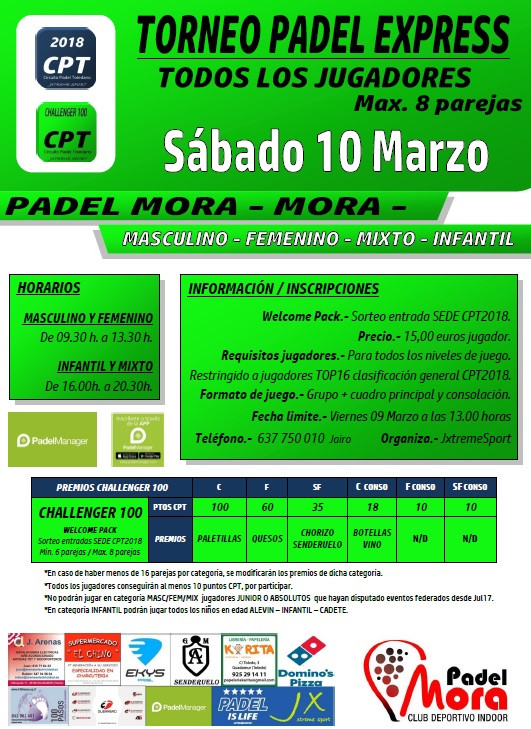 PADEL MORA - CHALLENGER100 - TORNEO EXPRESS MAX. 8 PAREJAS